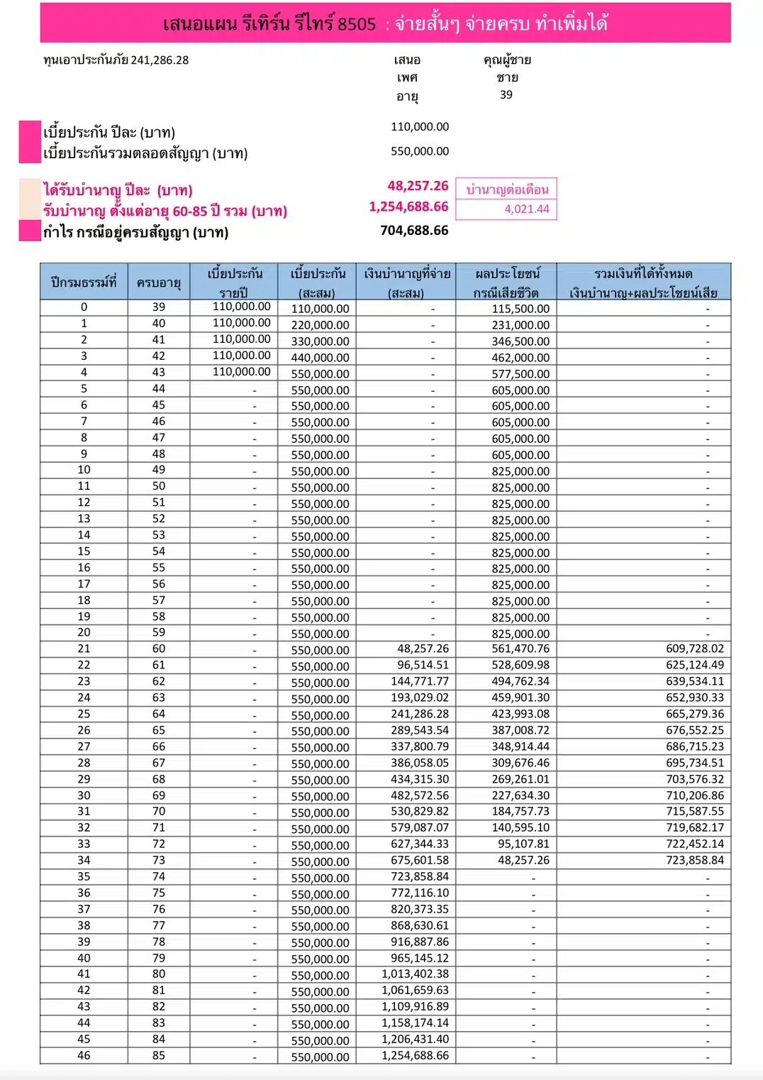 รายละเอียด รีเทิร์น รีไทร์ 8505 (บำนาญแบบลดหย่อนได้)